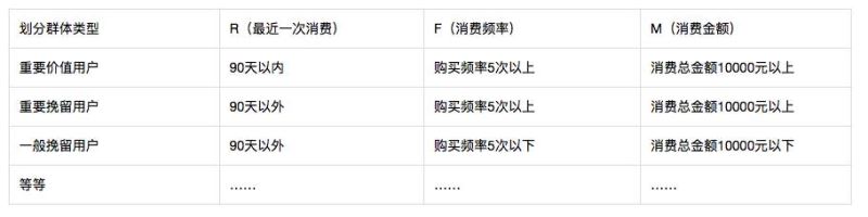 这就是RFM模型,曾经在传统行业被频繁应用,而在以消费为主的运营体系中能够移植过来为我们所用,它既是CRM系统的核心,而是消费型用户分群的核心。