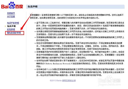 2、点击打开,可以看到左边“隐私权保护声明”: